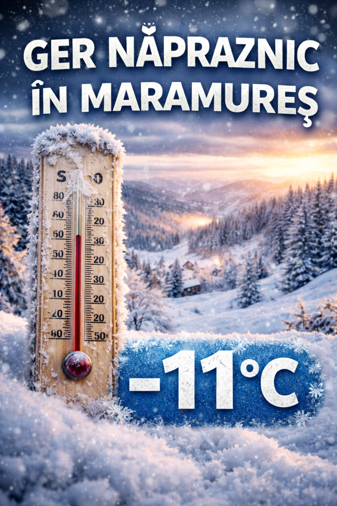 Vremea a fost deosebit de rece, geroasă dimineața. Cerul a fost mai mult noros și pe arii extinse ziua a nins. În cursul nopții și al dimineții a fulguit. Stratul de zăpadă proaspăt depus în afara părți carosabile măsoară până la 5 cm, informează CJSU Maramureș.