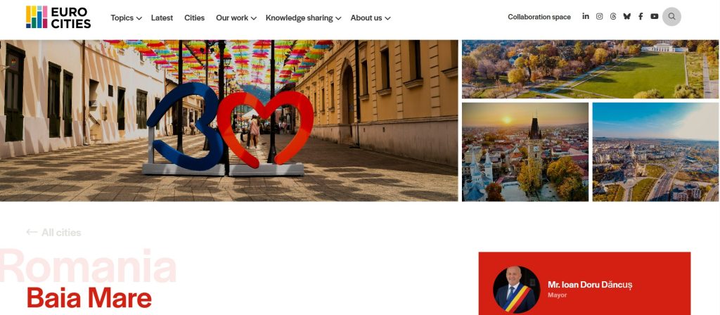Municipiul Baia Mare a fost acceptat ca membrucu drepturi depline în cadrul a două forumuri strategice ale rețelei Eurocities: Forumul Cultural și Forumul Digital, domenii care reflectă direcțiile de dezvoltare asumate de administrația locală și potențialul orașului în materie de inovare, creativitate și transformare urbană. Profilul Municipiului Baia Mare este disponibil deja pe platforma Eurocities.