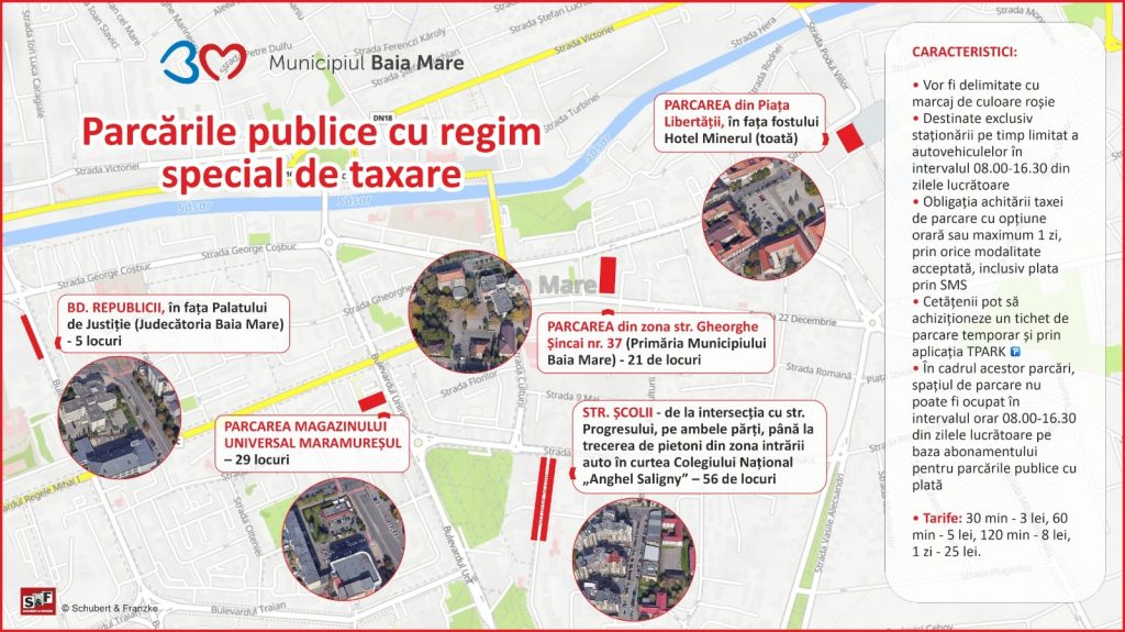 • parcarea Magazinului Universal Maramureșul29 de locuri;