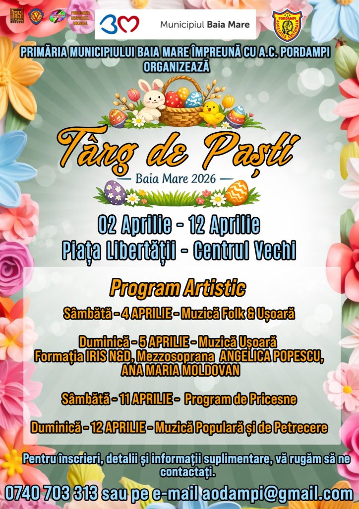Târgul de Paști – Baia Mare 2026 este organizat de Primăria Municipiului Baia Mare, în parteneriat cu Asociația Culturală Pordampi.